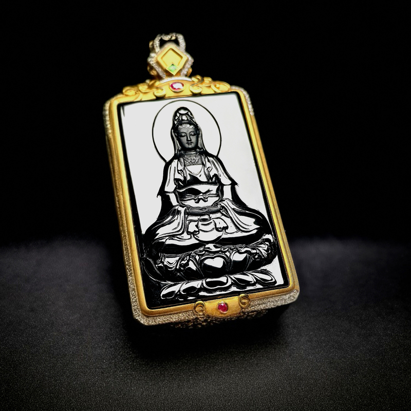 天然翡翠A货墨翠观音